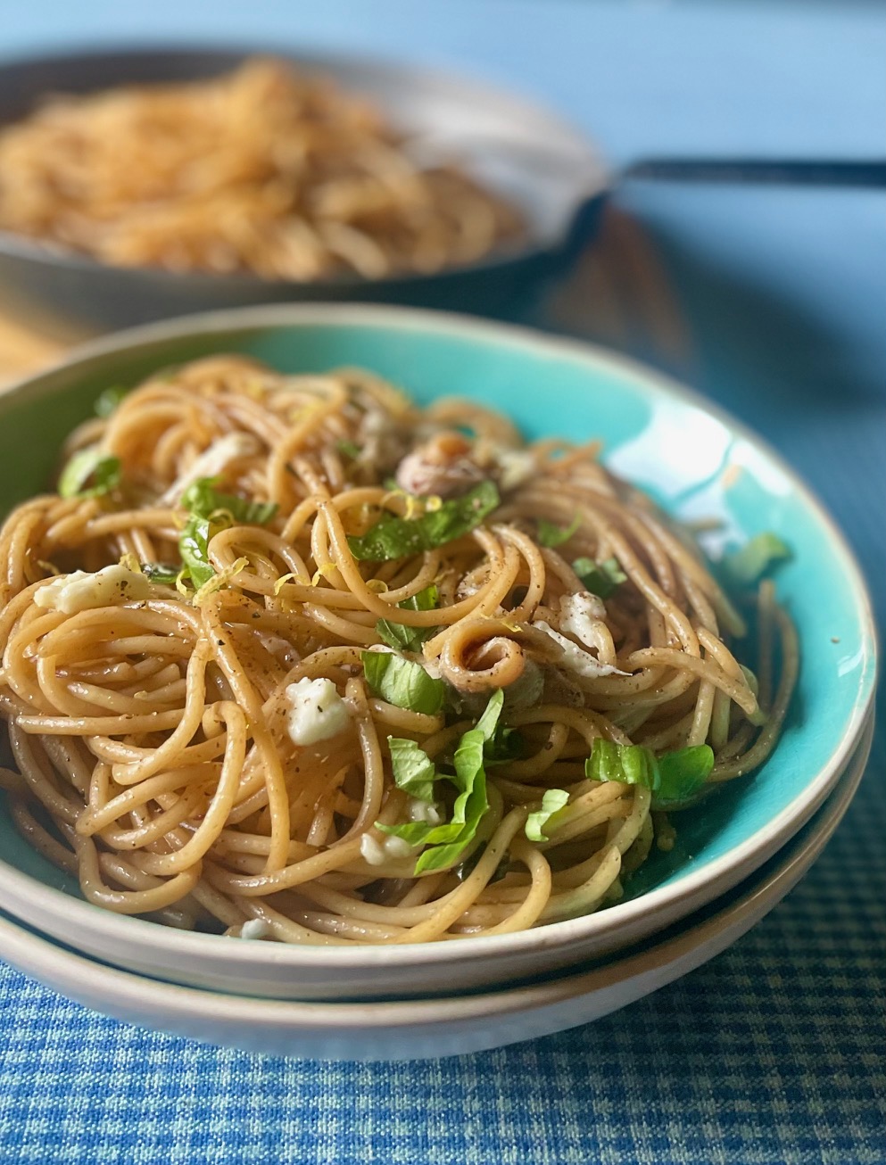 Μια εύκολη και γρήγορη συνταγή για σπαγγέτι με μαύρο σκόρδο και αντζούγιες, φουλ στο umami.