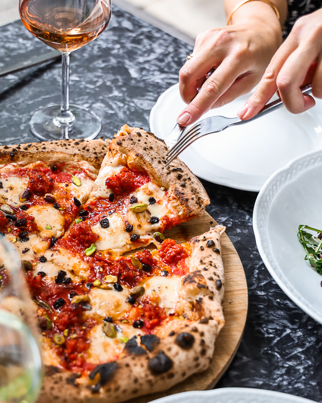 Φτάσαμε ένα σαββατιάτικο μεσημέρι και μπήκαμε σε ένα δίλημμα για το αν θα καθίσουμε τραπεζάκια στον γραφικό πεζόδρομο, στην άνετη και φιλόξενη σάλα ή στο εντυπωσιακό πάσο, με θέα την προετοιμασία της πίτσας και των φρέσκων ζυμαρικών στην ανοιχτή κουζίνα. Καλό είναι να προχωρήσεις σε κράτηση πριν το επισκεφθείς γιατί τις peak μέρες και ώρες δύσκολα θα βρεις ελεύθερο τραπεζάκι.
