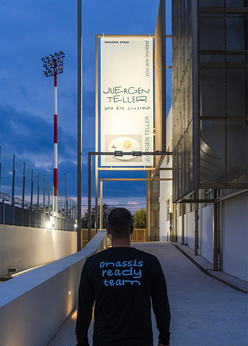 Όπως εξηγεί η καλλιτεχνική διευθύντρια της Στέγης, Αφροδίτη Παναγιωτάκου: «Μας αρέσει η θέση του Onasssis Ready στον χάρτη της πόλης. Ανάμεσα σε αποθήκες, βιοτεχνίες, εργοστάσια, σιδεράδικα, δίπλα σε ένα προπονητικό κέντρο ποδοσφαίρου, με μια ταράτσα απ’ όπου μπορείς να δεις και την Ακρόπολη και το λούνα παρκ. Είμαστε σε ένα σημείο που είναι ταυτόχρονα προάστιο του Πειραιά και της Αθήνας, κάπου στο ενδιάμεσο, κάπου “ανάμεσα”. Εκεί όπου νιώθουμε ότι ζούμε, έτσι κι αλλιώς. Και σκεφτήκαμε πως πρέπει να δώσουμε τον καλύτερό μας εαυτό για αυτή τη νέα αρχή, μετά από δεκαπέντε χρόνια παρουσίας ως Στέγη του Ιδρύματος Ωνάση. Διαλέξαμε έναν τέτοιο βιομηχανικό χώρο γιατί μας αρέσει η αδρή υφή του τσιμέντου, μας αρέσει που βρισκόμαστε σε έναν χώρο όπου πάντα κάτι φτιαχνόταν. Αυτή η ομορφιά μας ταιριάζει. Μια ομορφιά που αφήνει να φαίνονται όντως οι πόροι και οι ρυτίδες του δέρματος. Όπως συμβαίνει στις φωτογραφίες του Juergen».