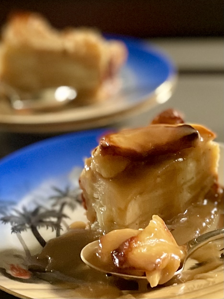 Εάν είστε πολύ γλυκατζήδες και αγαπάτε την καραμέλα, φτιάξτε μία sauce αλμυρής καραμέλας με καστανή ζάχαρη και ρούμι για να συνοδεύσετε το γλυκό. Δοκίμασα και τα δύο και προσωπικά μου άρεσε περισσότερο σκέτη για τη φινέτσα των αρωμάτων των μήλων και της βανίλιας, που αναδεικνύονται στην άνευ καραμέλας εκδοχή. Παρόλα αυτά, η sauce είναι πολύ νόστιμη και θα συνοδεύσει πολλά γλυκά, όπως cheesecake, κρέπες, βάφλες και pancakes, ακόμη και παγωτό ή γιαούρτι, αλλά και σαν άλειμμα αντί για μαρμελάδα.