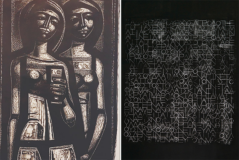 A. Τάσσος (Αναστάσιος Αλεβίζος), Σύνθεση με δύο γυναίκες, 1963 | Τάσσος Τριανταφύλλου, Game over baby-Η κατάρα της Γκόλφως, 2024