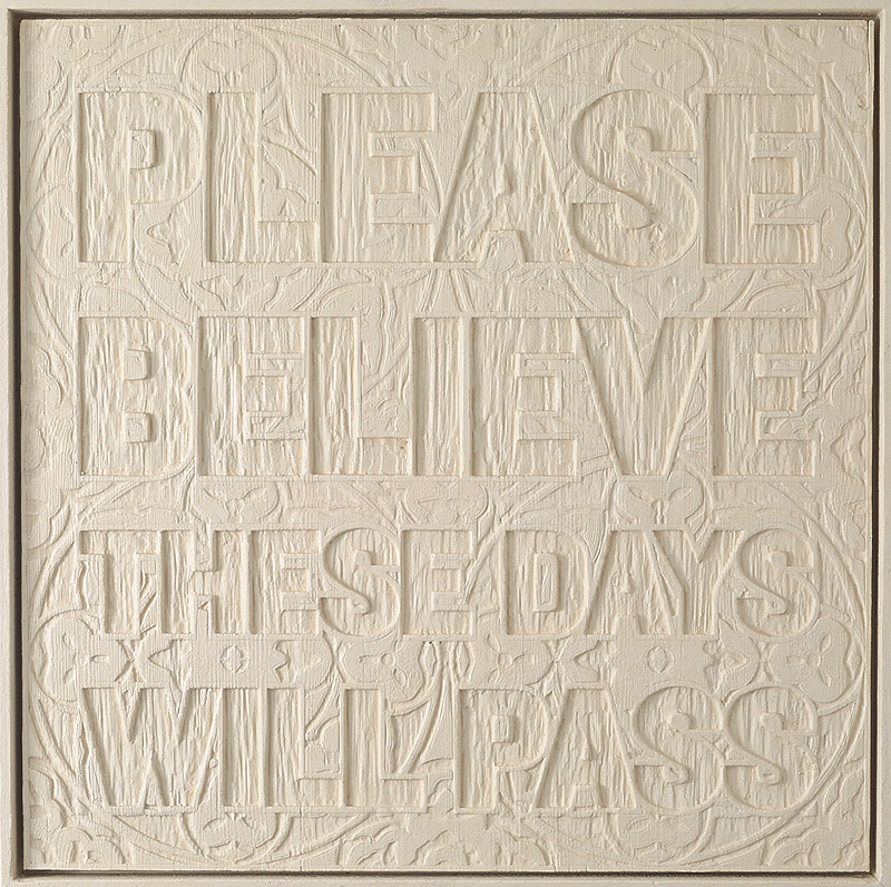 Mark Titchner, Please believe these days will pass, 2013-2016, καμένο σκαλιστό ξύλο και σκόνη μαρμάρου