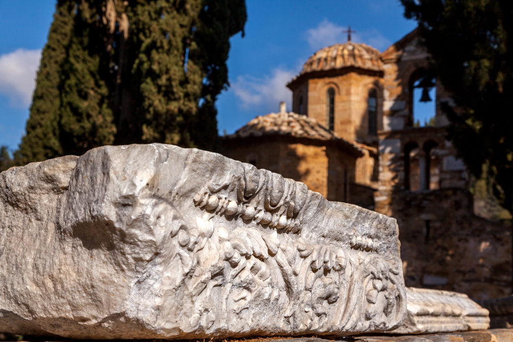 Ο Υμηττός δεν είναι μόνο δάσος και μονοπάτια· είναι κι ένα ανοιχτό μουσείο ιστορίας, διάσπαρτο με βυζαντινά μοναστήρια, ερειπωμένους πύργους και μυστικά που μαρτυρούν αιώνες ζωής. Πρώτη στάση, η Μονή Καισαριανής: Φωλιασμένη μέσα στο πράσινο, με αυλή που μοσχοβολά δάφνη και ρίγανη, και το εκκλησάκι της στολισμένο με τοιχογραφίες του 16ου αιώνα. Πρωτοϊδρύθηκε, λένε, επάνω στα ερείπια αρχαίου ναού του 2ου αιώνα μ.Χ. και είναι σήμερα επισκέψιμη 8.30-15.00, με εισιτήριο 2€.