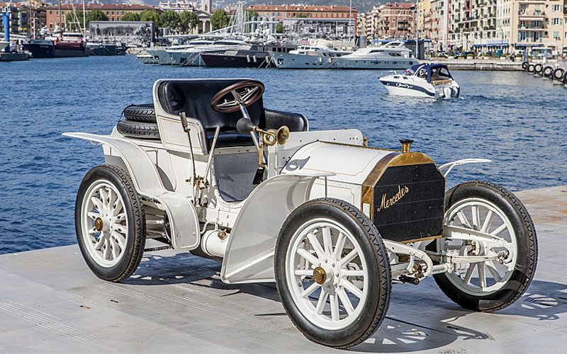 Στις 22 Νοεμβρίου 1900, η Daimler-Motoren-Gesellschaft (DMG) ολοκληρώνει το πρώτο όχημα αυτού του τύπου στο Cannstatt. Το εξαιρετικά καινοτόμο αυτό αυτοκίνητο δημιουργήθηκε κατόπιν αιτήματος του Emil Jellinek, επιχειρηματικού εταίρου της DMG και παθιασμένου οδηγού. Ο ιδιαίτερα δικτυωμένος αυτός επιχειρηματίας ήταν τότε ο σημαντικότερος πελάτης της εταιρείας. Μόνο μέσα στο 1900, παραγγέλνει συνολικά 72 νέα οχήματα, τα οποία μεταπωλεί σε αγοραστές από τα ανώτερα κοινωνικά στρώματα της Ευρώπης.
