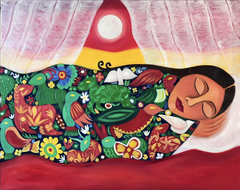 Mattar Malak, Sleeping in Nature When the World Sleep series, 2021, 80 x 50 cm, oil on canvas