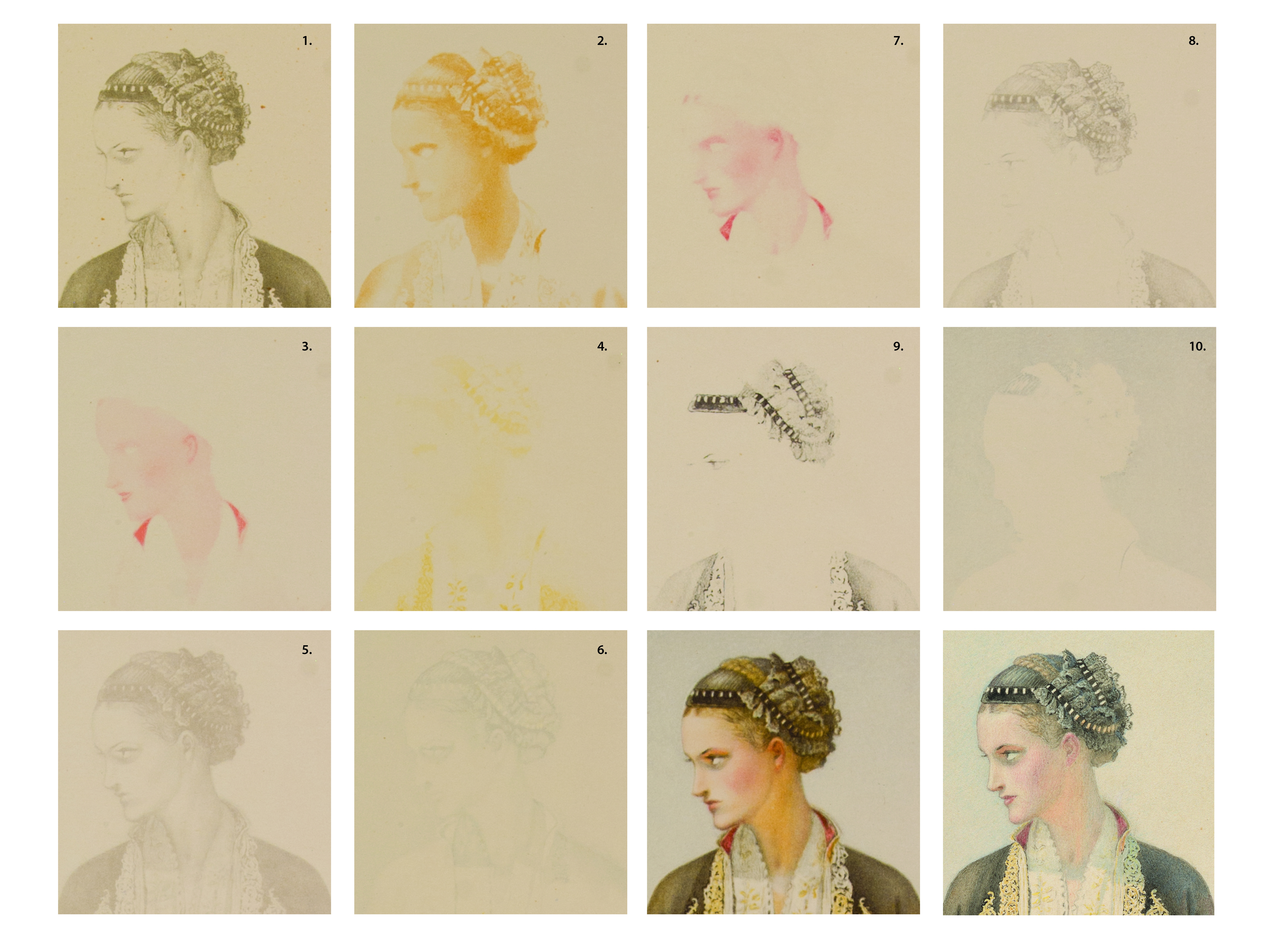 Σήμερα, τα εκθέματα που προέρχονται από το αρχείο της Ασπιώτη-ΕΛΚΑ Α.Ε., το οποίο απόκειται στο Ιστορικό Αρχείο της Εθνικής Τράπεζας, στοιχειοθετούν τις φάσεις της απαιτητικής αυτής εκτυπωτικής εργασίας και τεκμηριώνουν τον πρωτοποριακό χαρακτήρα του εκδοτικού εγχειρήματος. Παράλληλα, τα εκθέματα που προέρχονται από τις συλλογές του Μουσείου Μπενάκη αναδεικνύουν την κοπιώδη εργασία που προηγήθηκε της εκτύπωσης: τη συλλογή του ενδυματολογικού υλικού και την επιμέλεια της έκδοσης από τον Αντώνη Μπενάκη, την εκτέλεση των υδατογραφιών από τον Ρώσο μικρογράφο Nicolas Sperling και την επιστημονική τεκμηρίωση από τη λαογράφο Αγγελική Χατζημιχάλη.