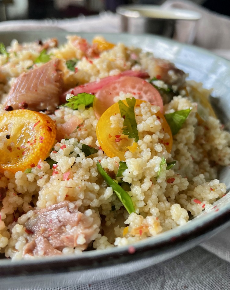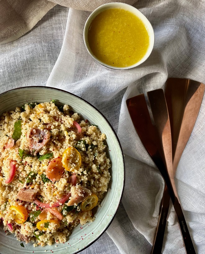 ΣΑΛΑΤΑ ΚΟΥΣΚΟΥΣ ΜΕ ΚΟΥΜΚΟΥΑΤ & ΚΑΠΝΙΣΤΗ ΠΕΣΤΡΟΦΑ