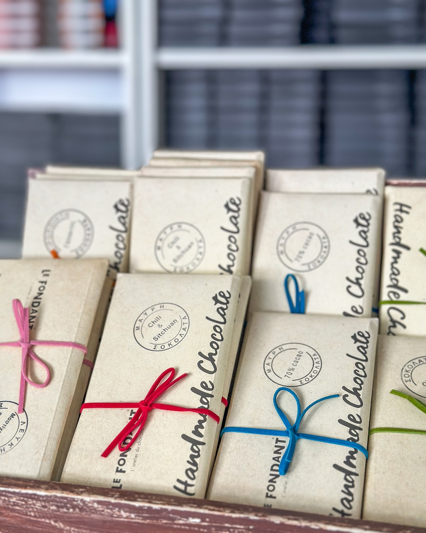Εξαιρετικό packaging κι εδώ, πιο νοσταλγικό μας υπενθυμίζει ότι επιμένουν χειροποίητα και πολύ καλά κάνουν. Η μαύρη σοκολάτα με chili και sitchuan είναι μια σοκολατένια πικάντικη εξίσωση για δυνατούς λύτες που κάνει εξαιρετικό pairing με ένα καλό bourbon, ενώ η λευκή σοκολάτα με μαστίχα και ροζ πιπέρι είναι ένα γλυκό όνειρο με παιχνιδιάρικη και ραφινάτη γεύση.