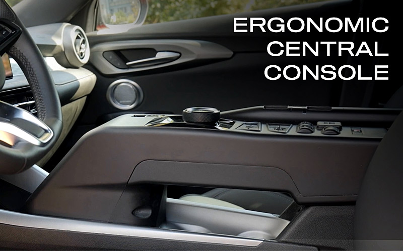 Μια υπερυψωμένη, ειδικά κατασκευασμένη κονσόλα που παράγεται μέσω προσθετικής κατασκευής εξασφαλίζει εύκολη πρόσβαση στα κύρια χειριστήρια του οχήματος, όπως το κιβώτιο ταχυτήτων, η κόρνα, τα παράθυρα, τα φώτα, το ηλεκτρικό φρένο, οι φωνητικές εντολές και οι θύρες USB. Η διάταξη και η τοποθέτηση των εξαρτημάτων έχουν βελτιστοποιηθεί για εμβέλεια, άνεση και λειτουργικότητα.