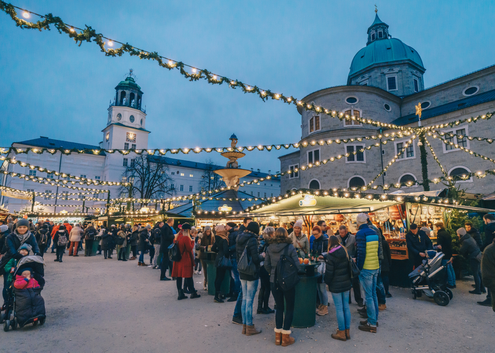 Η αγορά του Σάλτσμπουργκ απλώνεται γύρω από τον καθεδρικό ναό και το επιβλητικό φρούριο. Η πόλη αποκτά παραμυθένια ατμόσφαιρα, με μουσικές παραστάσεις, παραδοσιακά γλυκά και όμορφες μουσικές.