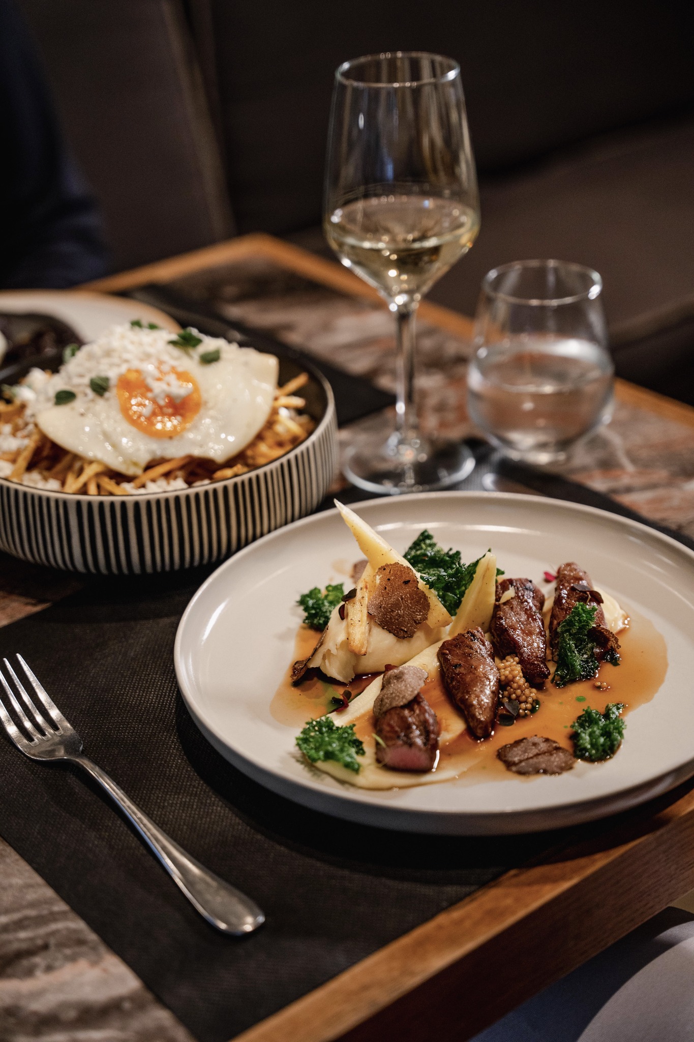 Η σαλάτα με ψητά παντζάρια (13€), κους κους, πορτοκάλι, φινόκιο μέντα και λεπτοτριμμένη φέτα ήταν μια μεγαλόστομη απάντηση σε όσους θεωρούν σαλατικά μόνο τις πρασινάδες. Έξτρα δροσιστική και βροντοφωνάζοντας την ελληνικότητα της προέλευσής της έμοιαζε ιδανική επιλογή πριν τα κυρίως. Τα χοιρινά μάγουλα μπρεζέ (27€) με πουρέ καρότο, βανίλια και δύο υπέροχα καροτάκια on top έμοιαζαν σιγουράκι αν κρίνουμε από τους ύμνους που λαμβάνουν επανειλημμένα στην κοινότητα των foodies. Πρόκειται για ένα πιάτο που έχει αύρα κυριακάτικου οικογενειακού τραπεζιού και κάνει μοναδικό pairing με ένα κόκκινο κρασί με πλούσιες τανίνες.