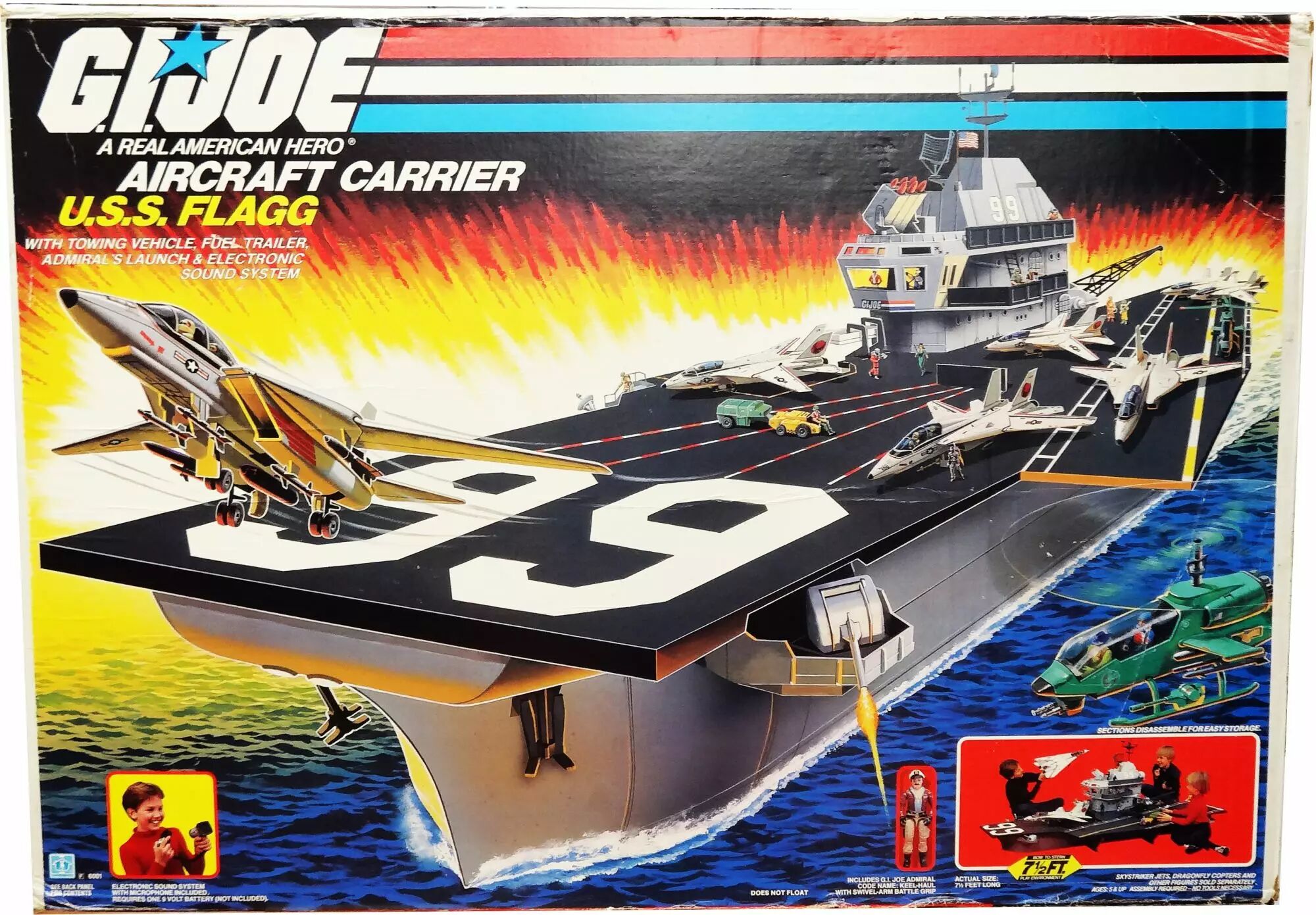 Τα G.I.JOE ήταν θρυλικά παιχνίδια της εποχής με την Ηasbro να βγάζει μια τεράστια μηχανή παραγωγής παιχνιδιών με αμέτρητους χαρακτήρες κι άλλα τόσα οχήματα. Ωστόσο υπήρχε G.I.JOE U.S.S Flagg Aircraft Carrier που έκατσε στον θρόνο της λίστας των μεγαλύτερων παιχνιδιών όλων των εποχών. Με ένα playset που ξεπερνούσε το ένα μέτρο ήταν πραγματικά τεράστιο κι ελπίζουμε να ήταν large μαζί σου ο Άγιος Βασίλης φέρνοντάς το ως δώρο. Αν το έχεις διατηρήσει σε καλή κατάσταση μάλιστα τώρα μπορείς να το πουλήσεις σε τιμές που ξεπερνούν τα 2000€.