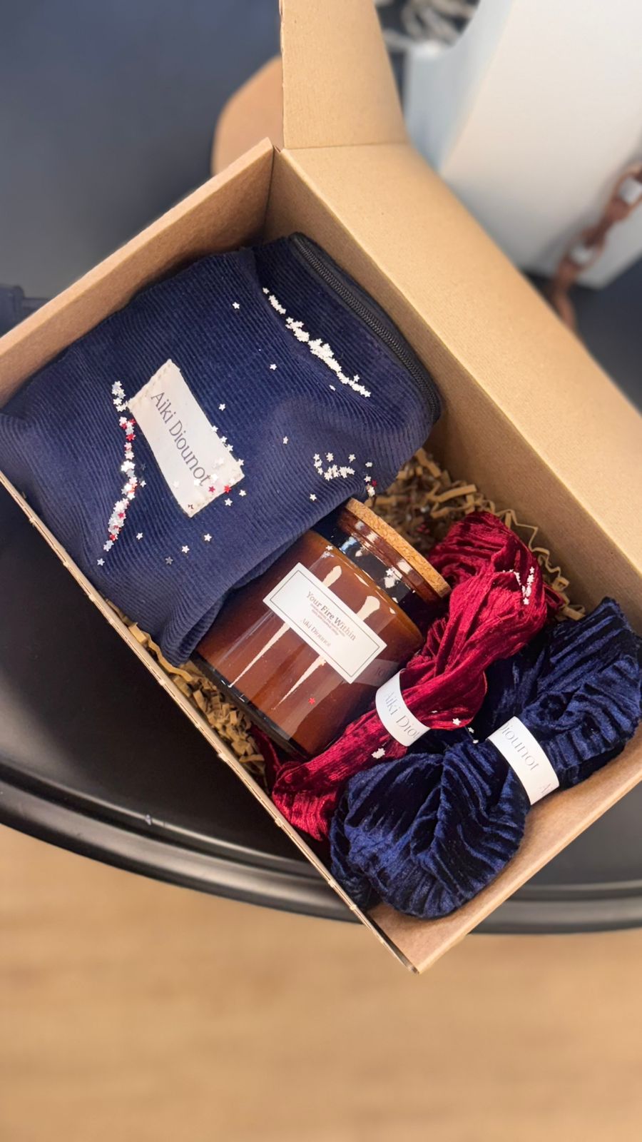 Στο showroom του Aiki Diounot στο Παγκράτι το δώρο γίνεται προσωπική υπόθεση. Εδώ μπορείς να δημιουργήσεις το δικό σου, μοναδικό gift box, διαλέγοντας κομμάτια από μια μικρή αλλά προσεγμένη συλλογή με νεσεσέρ, χειροποίητα κεριά, κάλτσες και scrunchies. Όλα μπαίνουν σε ένα κουτί γεμάτο χρυσόσκονη και αστέρια, φτιαγμένο για να ταιριάξει ακριβώς στον άνθρωπο που έχεις στο μυαλό σου. Εσύ απλώς συνδυάζεις, το αποτέλεσμα όμως μοιάζει σαν να έχει σχεδιαστεί αποκλειστικά για εκείνον.