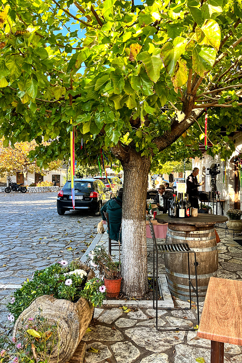 Ένας ολόχρυσος χειμωνιάτικος ήλιος φιλτράρεται ανάμεσα στα φουντωτά φυλλώματα της μουριάς που στολίζει το πλακόστρωτο έξω από την ταβέρνα Γεωργαντάς. Οι ηλιαχτίδες του, έτσι όπως πέφτουν πλαγιαστά, μοιάζουν να οδηγούν το βλέμμα στο μικρό πλατειάκι λίγα μέτρα παραπάνω. Η φύση πάντα ξέρει, αν την αφήσεις θα σου πει προς τα πού να πας.