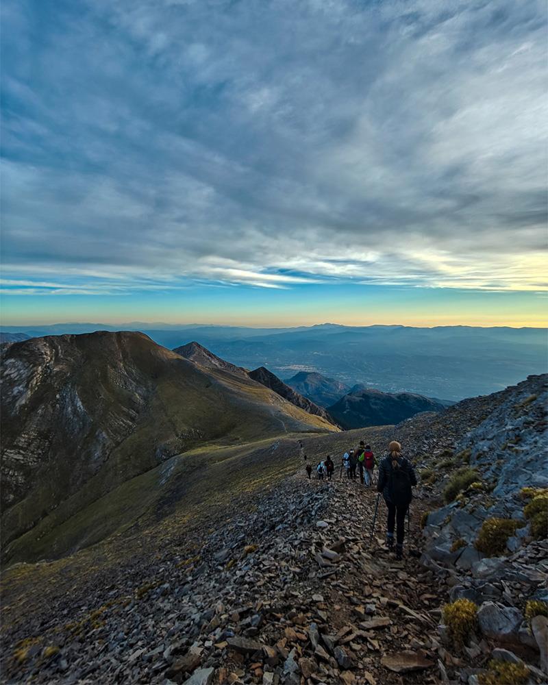 Εμπειρία μοναδική, που πρέπει να ζήσεις τουλάχιστον μία φορά στη ζωή σου, είναι η ανατολή του ήλιου πάνω από την ψηλότερη κορυφή του, την λεγόμενη Πυραμίδα. Για να τη δεις από κοντά, θα διανυκτερεύσεις στο καταφύγιο του ΕΟΣ Σπάρτης που βρίσκεται σε υψόμετρο 1.550 μέτρων, και από εκεί θα ξεκινήσεις στην κυριολεξία αξημέρωτα, για την 7 χιλιομέτρων διαδρομή που θα σε φέρει… στην κορυφή του κόσμου, να συναντήσεις τον θεό ήλιο και το άρμα του. Γίνεται και οργανωμένα, αν δεν εμπιστεύεσαι τις ικανότητες προσανατολισμού σου.