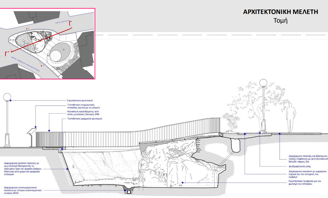 Αποκατάσταση του σπηλαίου: Το μνημείο είναι ουσιαστικά ένα τεχνητό σπήλαιο λαξευμένο στον βράχο. Θα στερεωθεί και θα καθαριστεί για να αναδειχθεί η αρχική του μορφή, ενώ παράλληλα θα γίνουν ήπιες επεμβάσεις στο μαρμάρινο στηθαίο και την αρχαία πλακόστρωση.