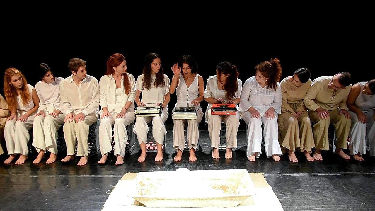 Με λιγοστά σκηνικά αντικείμενα (14 κουτιά, τρεις γραφομηχανές, έναν κουβά, μπουκάλια με νερό και μια σκάφη πλυσίματος), αξιοποιώντας τα σώματα και τις φωνές των ερμηνευτών, η παράσταση συνιστά μια ανατρεπτική, καθηλωτική σκηνική ανάγνωση του διηγήματος, που τιμά τον μεγάλο ποιητή της πεζογραφίας μας και αναδεικνύει τον γλωσσικό πλούτο της ελληνικής γλώσσας, σε μια εποχή που αυτή απερίσκεπτα συρρικνώνεται.