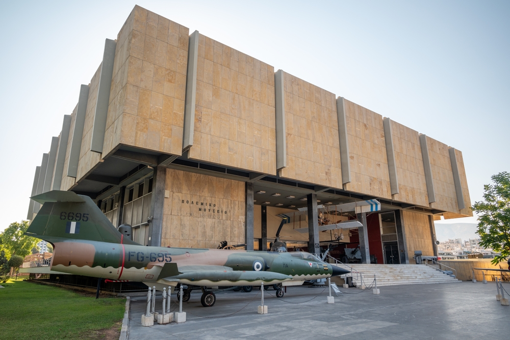 Μακράν το πιο αντιπροσωπευτικό δείγμα μπρουταλιστικής αρχιτεκτονικής στην Αθήνα, το Πολεμικό Μουσείο με τις εμφανείς Bauhaus αναφορές του, σχεδιάστηκε από τον αρχιτέκτονα Θουκυδίδη Βαλεντή, κατασκευάστηκε επί Χούντας, και εγκαινιάστηκε το 1975. Με την αυστηρή του γεωμετρία, τους συμπαγείς όγκους και τις πλατιές, αδιαπέραστες επιφάνειες, μοιάζει να υιοθετεί τη λογική του μπρουταλισμού όχι ως στιλιστική δήλωση αλλά ως εργαλείο εξουσίας: Εδώ η αρχιτεκτονική δεν χαμηλώνει τον τόνο, δεν «σπάει» για να σε βάλει μέσα, αλλά στέκεται επιβλητική και απόμακρη. Είναι από εκείνα τα δημόσια κτίρια που δεν προσπαθούν να γίνουν αγαπητά· προτιμούν να είναι αδιαμφισβήτητα –ίσως και λιγάκι τρομακτικά.