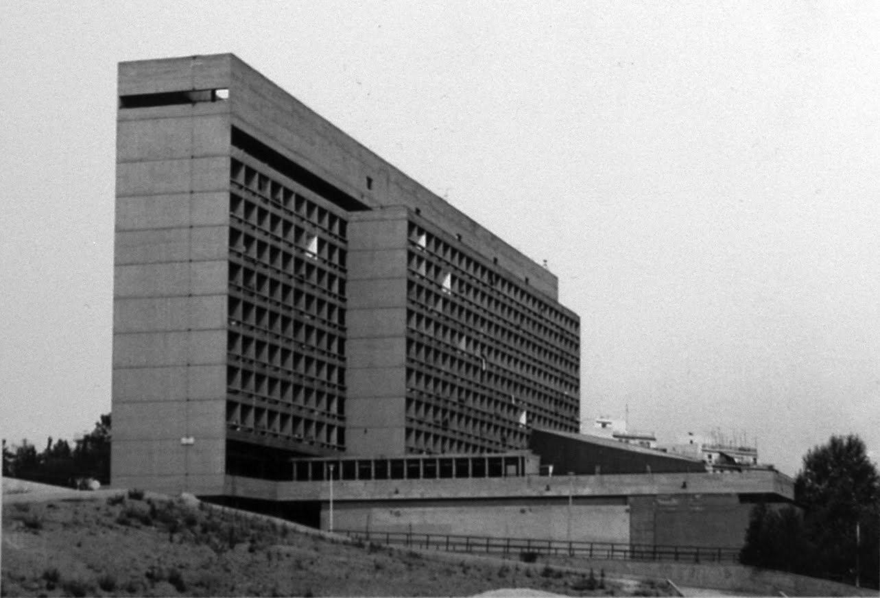 Ίσως η φωτογραφία που θα σου φέρει πιο πολύ απ’ όλες στο μυαλό τον σοβιετικό μπρουταλισμό, τον ορίτζιναλ, τον ορθόδοξο (τη βοηθάει και το ασπρόμαυρο, όλα να τα λέμε) είναι αυτή από τις εστίες του Εθνικού Μετσόβιου Πολυτεχνείου, που σχεδιάστηκαν από τους αρχιτέκτονες Κώστα Φινέ και Ντίνο Παπαϊωάννου το 1974.