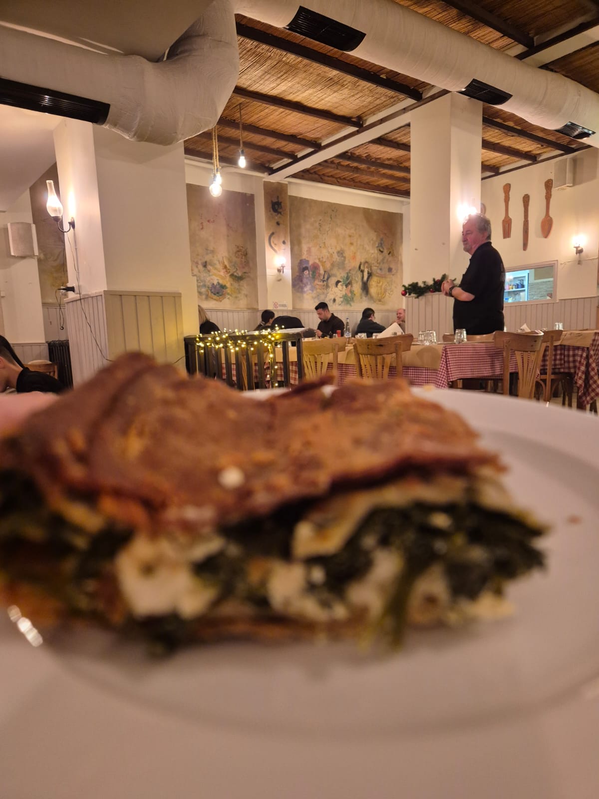 Το σαγανάκι με κεφαλογραβιέρα Παραμυθίας (6€) δεν μπορούσε να αντισταθεί στις μαχαιροπιρουνιές μας κι έλιωνε εύκολα, παραμένοντας στη σωστή θερμοκρασία. Σειρά είχε η πίτα της ημέρας (4€) και χαρήκαμε ιδιαίτερα όταν μάθαμε πως μας έλαχε η σπανακοτυρόπιτα καθώς είμαστε φαν και δεν ντρεπόμαστε να το παραδεχτούμε. Χοντρό χειροποίητο φύλλο και μπαμπάτσικη γέμιση ήταν όσα χρειαζόταν για να απογειωθεί η γευστική μας εμπειρία.