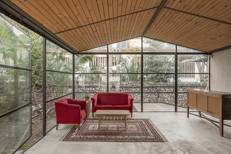 «Προφανώς δεν θέλαμε να αλλάξει μορφή το πράγμα» συμπληρώνει καθώς παρατηρώ το γυμνό μπετόν στο δάπεδο, τις εμφανείς μεταλλικές σωληνώσεις στους τοίχους, τους αναλογικούς μετρητές επάνω στα φθαρμένα ξύλινα κιβώτια του μικρού σαλονιού στο οποίο καθόμαστε, και σκέφτομαι ότι το αποτέλεσμα τους δικαιώνει απόλυτα.