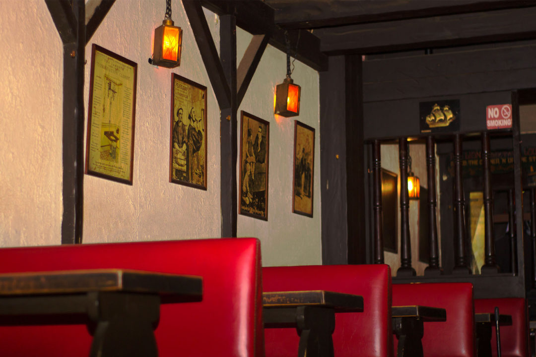 Το εσωτερικό της Red Lion είναι όσο γοητευτικά παλιακό και ατμοσφαιρικό περιμένεις. Παρά την ηλικία του, παραμένει σε άριστη κατάσταση. Χαμηλός φωτισμός, ξύλο, κόκκινες αποχρώσεις και μια επιβλητική μπάρα που κουβαλά πάνω της δεκαετίες ιστορίας. Είναι το επίκεντρο του χώρου, εκεί θα πιάσεις θέση για να παραγγείλεις ή να αράξεις και να τα πιείς μόνος ή μη, όπως αρμόζει σε μια κλασική pub. Αριστερά στον τοίχο και δεξιά, υπάρχουν και κάποια μεγάλα τραπέζια ό,τι πρέπει για παρέες. Στα συν ότι απαγορεύεται το κάπνισμα μέσα.