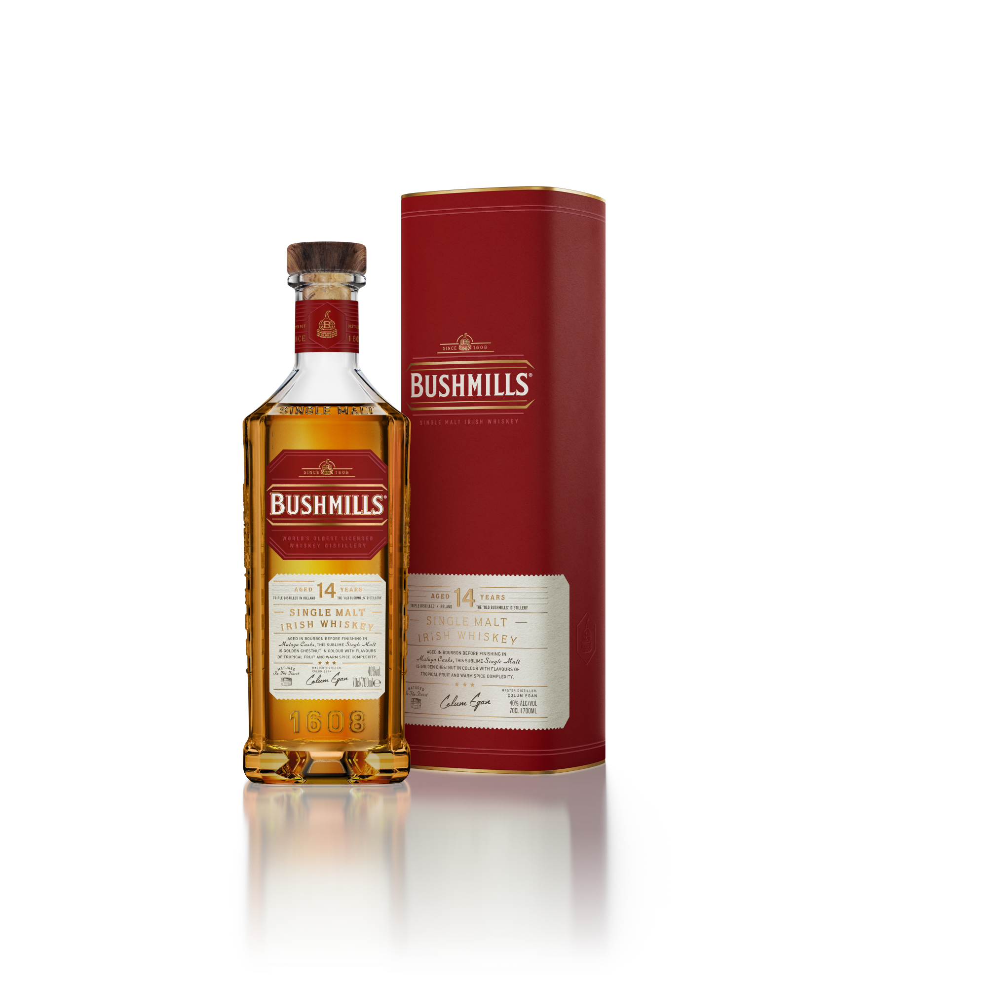 Το Bushmills 14 Year Old είναι ένα ιρλανδικό single malt που δείχνει τι μπορεί να πετύχει ο χρόνος όταν συνδυάζεται με σωστές επιλογές βαρελιών. Πρόκειται για ένα single malt ουίσκι τριπλής απόσταξης, που περνά από μια ιδιαίτερη και προσεκτικά σχεδιασμένη διαδικασία ωρίμανσης. Η βασική του ωρίμανση πραγματοποιείται για τουλάχιστον δεκατέσσερα χρόνια σε βαρέλια bourbon πρώτης και δεύτερης χρήσης, χτίζοντας καθαρότητα και βάθος, πριν ακολουθήσει ένα προσεγμένο φινίρισμα έως δώδεκα μήνες σε σπάνια βαρέλια από κρασί Μάλαγα. Το αποτέλεσμα είναι ένα ουίσκι με έντονο φρουτώδη χαρακτήρα και υποδειγματική απαλότητα.