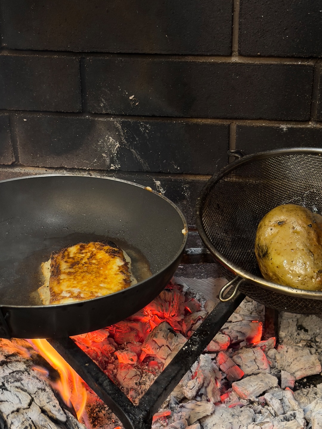 Έπειτα η χειροποίητη πίτα ημέρας (7,5€) ήταν μια τραγανή τυρόπιτα που θα θέλαμε να βγάζει ο φούρνος της γειτονιάς μας κι ας κάναμε διπλές προπονήσεις στο γυμναστήριο εφ’ όρου ζωής. Η πατάτα οφτή με ξινή κρέμα, καπνιστή πάπρικα και φρέσκο τριμμένο κρεμμυδάκι μας ξάφνιασε αν μη τι άλλο ευχάριστο με τον γευστικό της πλούτο καθώς είχε μαλακώσει πολύ κι έλιωνε με την πρώτη κιόλας πιρουνιά.