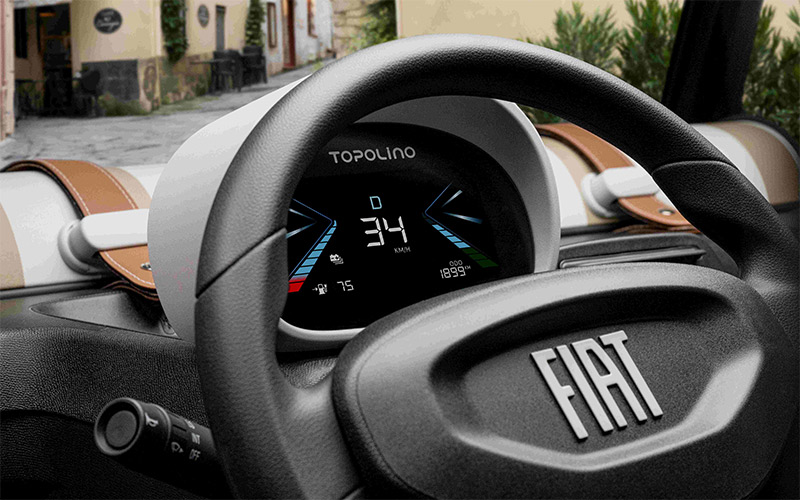 Το Topolino γίνεται επίσης πιο εύχρηστο με το ολοκαίνουργιο ψηφιακό cluster του, που εξελίσσεται από 3,5'' σε 5,7'', με πλήρη επιφάνεια οθόνης 8,3''. Το νέο ψηφιακό cluster εισάγει απλοποιημένα γραφικά, βελτιωμένη αναγνωσιμότητα και μια πιο ανάλαφρη, πιο φιλική οπτική γλώσσα.