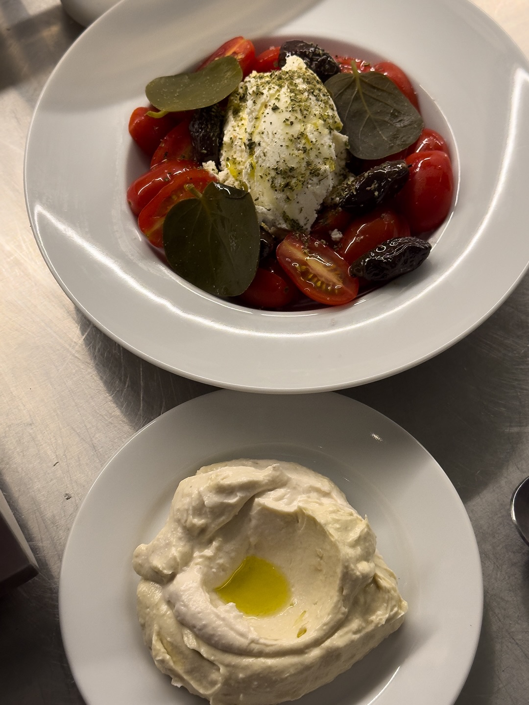 Πρώτο ήρθε το ψωμάκι (4,5€) προζυμένιο και φρεσκοφουρνιστό με λαδάκι κι ανθό αλατιού να το νοστιμεύει ακόμα περισσότερο. Μας κέρδισε με την αφρατοσύνη του κι έγινε πολλαπλές βούτες στη σαλάτα με τα ντοματίνια, τη γαλομυζήθρα και τις ελιές (9€) η οποία επίσης κατέφθασε σε μια γενναιόδωρη μερίδα που δεν μπορέσαμε να τελειώσουμε.