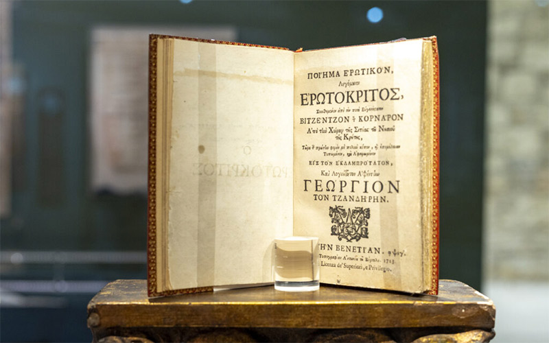 Η πρώτη έκδοση των έργων του Ομήρου έγινε στη Φλωρεντία το 1488, από τον Δημήτριο Χαλκοκονδύλη. Λίγα χρόνια νωρίτερα, το 1476, τυπώθηκε στο Μιλάνο το πρώτο ελληνικό βιβλίο, η γραμματική του Λάσκαρι. Θα τα δεις και τα δύο –και δεν θα πιστεύεις στα μάτια σου– πλάι στον αυθεντικό Ερωτόκριτο του 1713, ένα από τα τρία μόνο αντίτυπα που υπάρχουν αυτή τη στιγμή στον κόσμο, στην έκθεση που φιλοξενείται αυτές τις μέρες στο εμβληματικό κτίριο της Γενναδείου Βιβλιοθήκης, η οποία γιορτάζει φέτος τα εκατό της χρόνια.