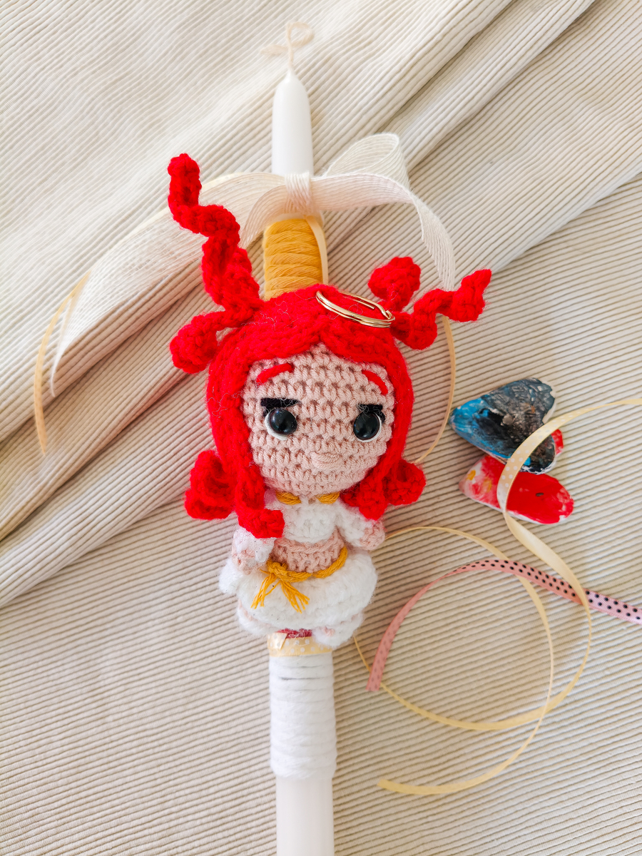 Λαμπάδα με πλεκτό Mira Kpop από την littlemess.things για τους λάτρεις της K- Pop. Τιμή 22€.