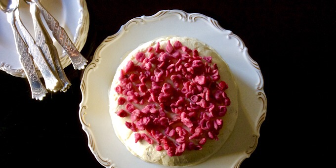 Ξεφορμάρουμε το γλυκό, το τοποθετούμε σε πιατέλα και σερβίρουμε. Κι επειδή πρώτα ευχαριστιέται το μάτι, σας δίνω μερικές ιδέες για την διακόσμηση. Εγώ έτυχε να έχω ζαχαρωμένες βιολέτες οι οποίες έδωσαν όχι μόνο την ομορφιά τους, αλλά κι ένα υπέροχο λεπτό άρωμα (βρίσκουμε ζαχαρωμένα λουλούδια στα μαγαζιά που πωλούν είδη ζαχαροπλαστικής). Διατηρούνται πολλούς μήνες αναλλοίωτα. Άλλες ιδέες για ντεκόρ είναι πούδρα από φιστίκια Αιγίνης, καραμελωμένοι ξηροί καρποί αλλά και για όσους έχουν κήπο με τριανταφυλλιές, ροδοπέταλα που ζαχαρώνουν πανεύκολα ως εξής: αφού τα πλύνουμε και τα στεγνώσουμε καλά, τα βουτάμε σε ελαφρώς χτυπημένο ασπράδι αυγού, περιμένουμε λίγα λεπτά ώστε να αρχίσει να στεγνώνει ελαφρώς το ασπράδι, τα βουτάμε σε ζάχαρη και τα αφήνουμε να στεγνώσουν εντελώς πάνω σε σχάρα.