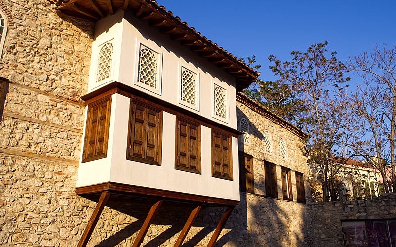 (*) Σαχνισιά λέμε αυτά τα πολύ χαρακτηριστικά κλειστά μπαλκόνια που στηρίζονται πάνω σε ξύλινα δοκάρια. Είναι οι τυπικά οθωμανικοί πρόδρομοι των έρκερ, και τα συναντάμε σε όλα τα Βαλκάνια και τη Μέση Ανατολή. Το όνομά τους είναι περσικό, σημαίνει «θρόνος του βασιλιά», παρόλο που σε αυτά κάθονταν συνήθως οι γυναίκες, για να μπορούν να κοιτάζουν έξω χωρίς να τις βλέπουν.