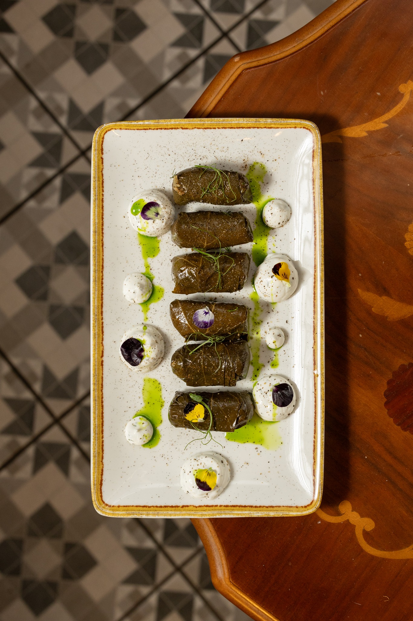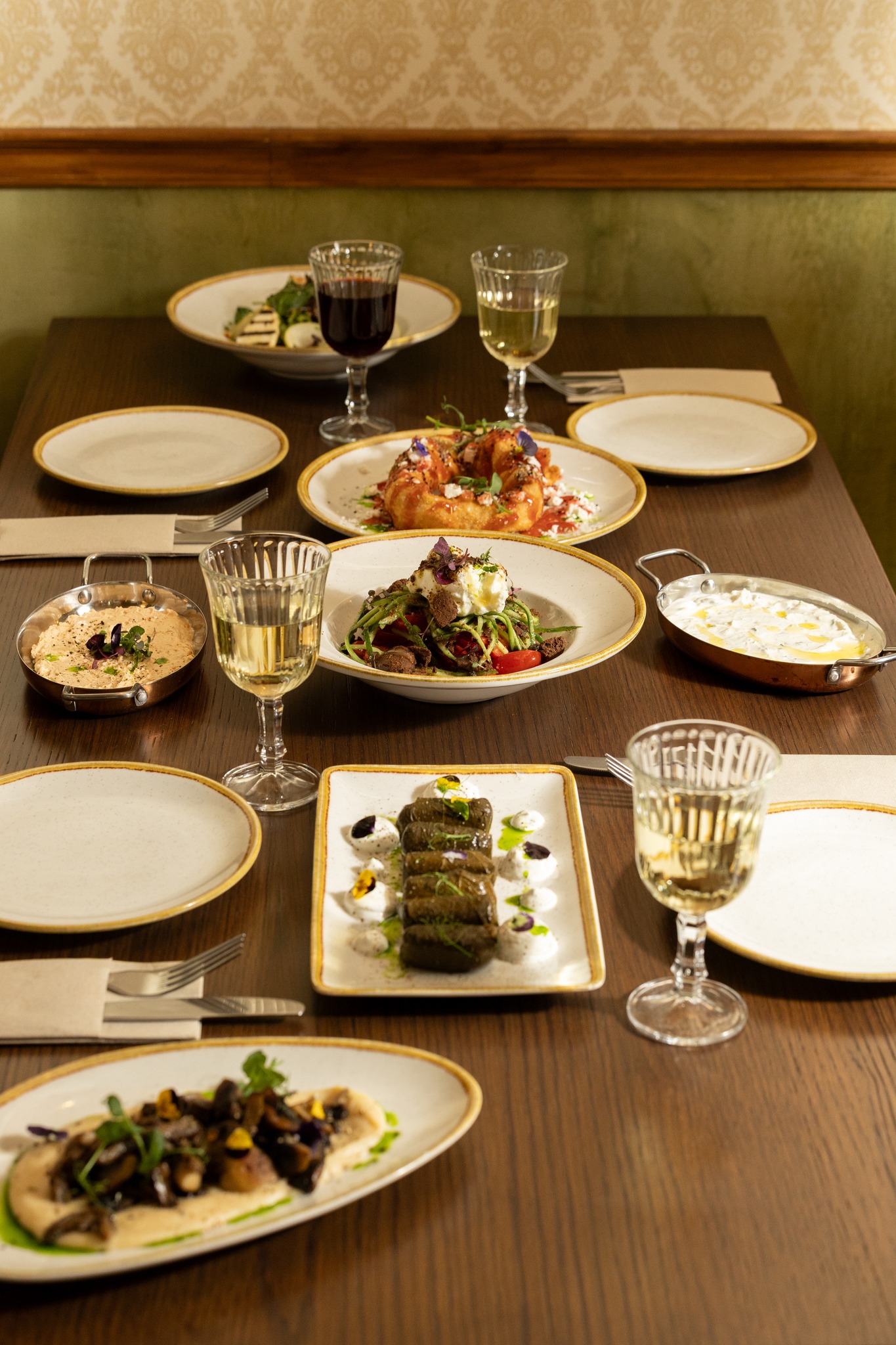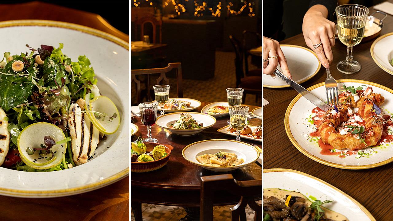 Με γεύσεις βγαλμένες από μια άλλη εποχή, το εδεσματοπωλείο χρησιμοποιεί φρέσκες πρώτες ύλες υψηλής ποιότητας και συνταγές από τα παλιά τετράδια των γιαγιάδων μας αποδίδοντάς τα μέσα από σύγχρονες μαγειρικές τεχνικές. Μόλις σίγησαν οι προπόσεις άρχισαν να φτάνουν στο τραπέζι μας τα πιάτα που παραγγείλαμε. Πρώτη η ομώνυμη σαλάτα (10,20€) με ανάμεικτα λαχανικά, ψητό μανούρι, πίκλα αχλάδι, φουντούκι, τοματίνια, μαύρο σουσάμι και μια πηχτή dressing από λευκό βαλσάμικο. Δροσερή κι ιδανική για να προϋπαντήσει το καλοκαιράκι που είναι προ των πυλών μας εξέπληξε ευχάριστα για το μέγεθός της μεταξύ άλλων. Τα ντολμαδάκια με γιαούρτι (6€) είναι από ταπλέον αγαπημένα ορεκτικά του καταλόγου δικαίως όπως και η ψητή στριφτόπιτα (9,5€) με τραγανό χωριάτικο φύλλο, λιαστή ντομάτα, μαύρο σουσάμι και σάλτσα φράουλα σε μια παραπάνω γλυκιά από όσο περιμένα σύμπραξη. Η πίτα ήρθε ζεστή και ροδαλή σχεδόν σε χρώμα, παραγεμισμένη με τυρί ως είθισται εκεί που ξέρουν και με την φράουλα να της δίνει μια υφάλμυρη ένταση ιδιαίτερα ευχάριστη.