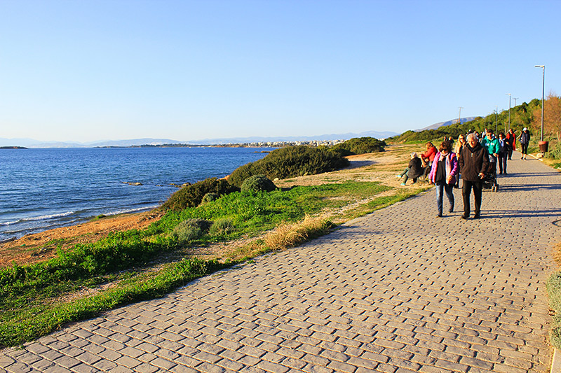 Ξεκινάς, που λες, από την Τσονίμα, μια από τις ωραιότερες αμμουδιές της Αττικής, και ακολουθείς την (όνομα και πράγμα) Λεωφόρο Γαλήνης η οποία θα σε περάσει διαδοχικά από το υπέροχο κολπάκι που λέγεται Περιγιάλι και από τον λόφο του απολύτως κυκλαδίτικου Προφήτη Ηλία, προτού καταλήξει, μετά από δυόμιση χιλιόμετρα, στην αμμουδιά της Αγίας Μαρίνας Μικρολίμανου.