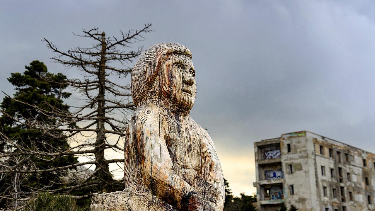 Ακριβώς μπροστά του, το «Πάρκο των Ψυχών» του γλύπτη Σπυρίδωνα Ντασιώτη, δημιουργημένο από καμένους κορμούς δέντρων, αποτελεί μια άκρως ατμοσφαιρική εικαστική παρέμβαση, ένα υπαίθριο μουσείο για τις ψυχές που ταλαιπωρήθηκαν.