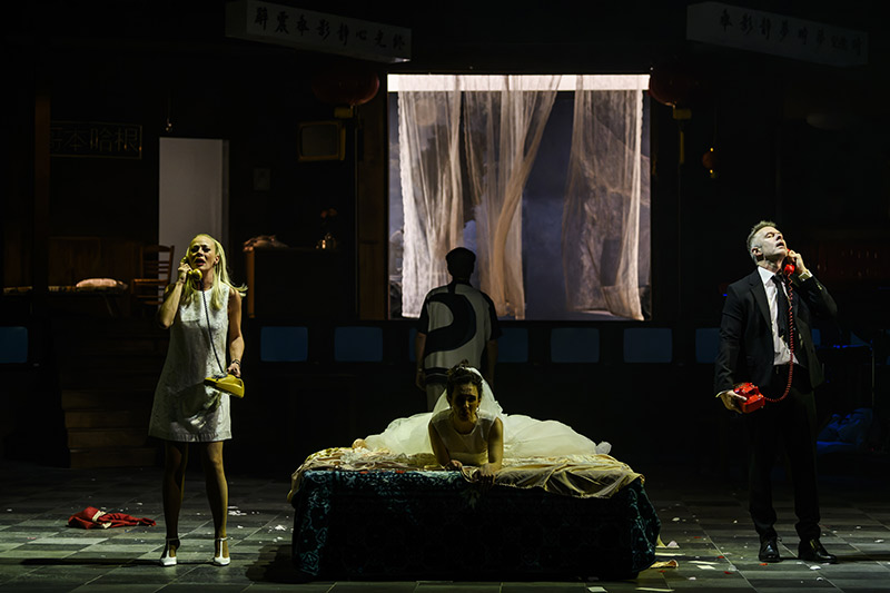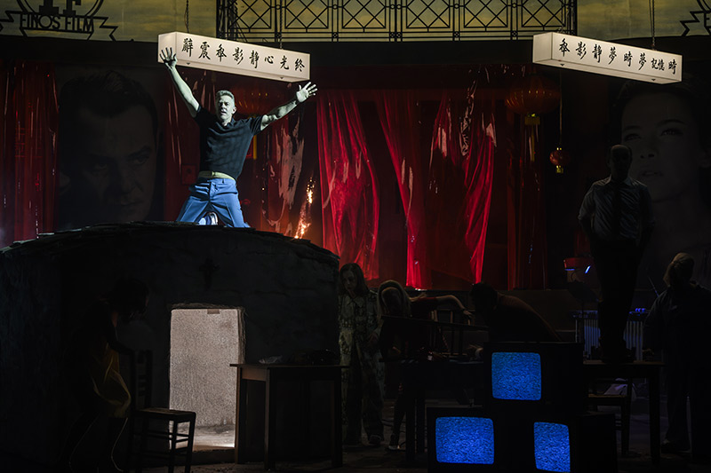 Ισότιμος συμπρωταγωνιστής της παράστασης, γεμάτο αναφορές στην ταινία από τη μια και μυστηριώδεις λεπτομέρειες που ανοίγουν συζητήσεις στα θεατρικά πηγαδάκια απέξω, από την άλλη. Τι είναι, ας πούμε, τα κινέζικα φαναράκια και οι εξίσου κινέζικες επιγραφές που κρέμονται πάνω από τη σκηνή; Να αναφέρονται άραγε στην τουριστικοποίηση των νησιών που πέρασε και σήκωσε μια ολόκληρη εποχή, εκείνη που χάθηκε για πάντα, κι εκείνη στην οποία αφιερώνεται η παράσταση; Ή μήπως είναι σύμβολα για την απομίμηση, την «φτηνιάρικη» εκδοχή του ορίτζιναλ, και μας κλείνουν αυτοσαρκαστικά το μάτι;
