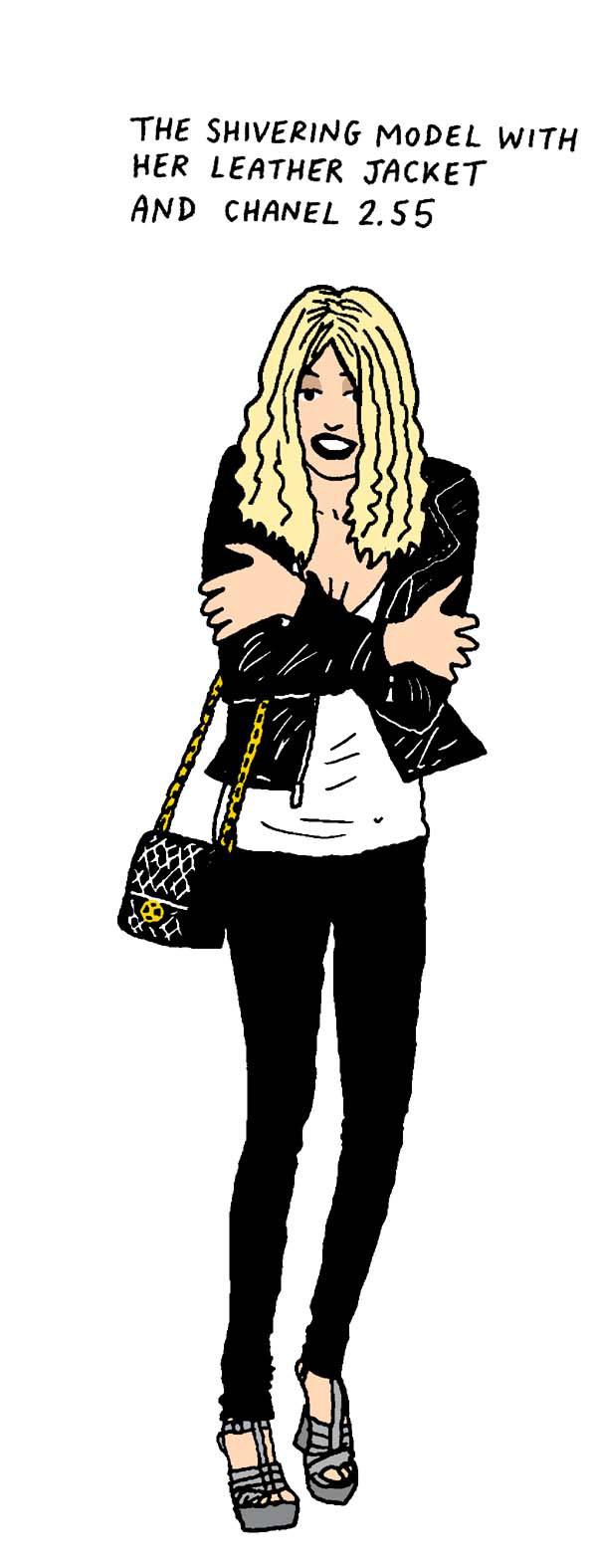 ΔΙΑΣΚΕΔΑΣΗ E-FRONTROW The 10 Types of people you see at Fashion Week γράφει:Ευφροσύνη Πολυζώη 13 Φεβρουαρίου 2013 Παλαιότερο των 360 ημερών Το ιντερνετικό περιοδικό The Cut ζήτησε από τον σκιτσογράφο Peter Arkle να σχεδιάσει τους δέκα πιο χαρακτηριστικούς τύπους που συναντά κάποιος στα fashion weeks. Δείτε το αποτέλεσμα: