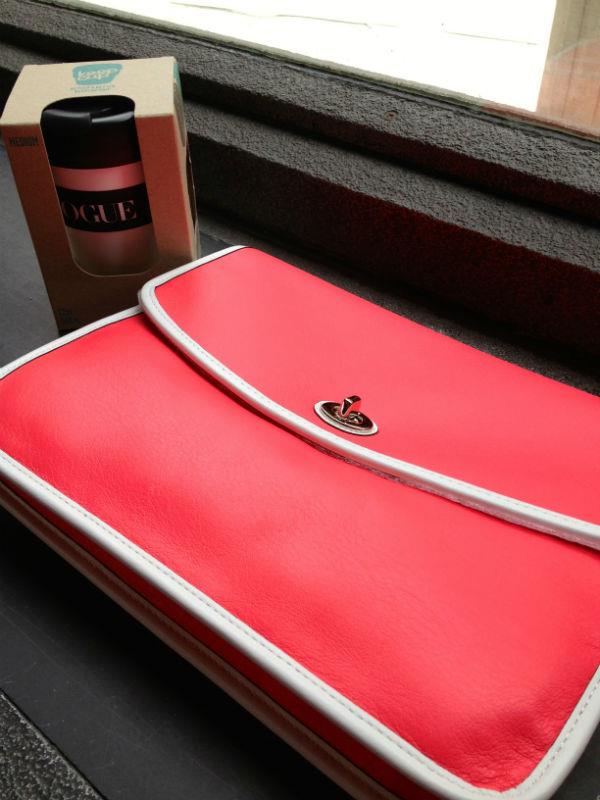 Οι δικές μου επιλογές μου, ένα Coach clutch σε υπέροχο καλοκαιρινό χρώμα, ένα Vogue t-shirt και φυσικά ένα Vogue Keep cup για τον αγαπημένο μου καφέ.