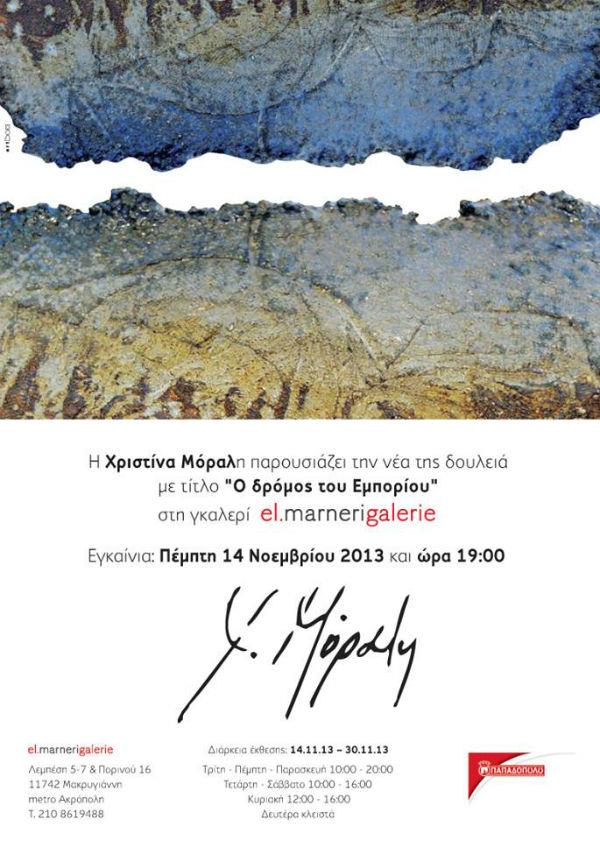 "Ο δρόμος του Εμπορίου” είναι ο τίτλος της τελευταίας δουλειάς, που παρουσιάζει η Χριστίνα Μόραλη στην γκαλερί Ελένη Μαρνέρη.