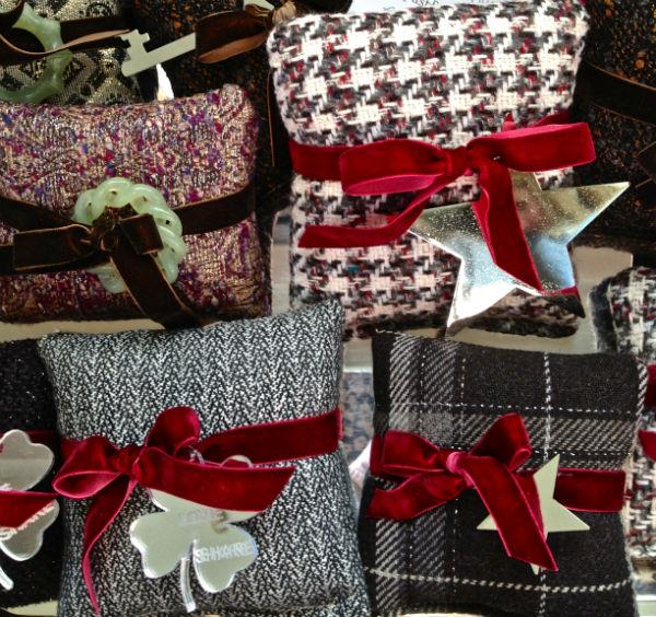 Και τα υπέροχα Γούρια της Νάνας Μετζελοπούλου-Μπελιμπασάκη από το Past & Present, πάνω σε μαξιλαράκια φτιαγμένα από τα υφάσματα της Εύης.