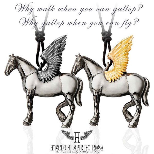 Η Angelo di Spirito Rosa για το 2014 έχει δημιουργήσει ένα πολύ κομψό γούρι, εμπνευσμένο από τον Πήγασο το φτερωτό άλογο της ελληνικής μυθολογίας, ως σύμβολο ελευθερίας και με την ελπίδα να μας χαρίσει επιμονή και σοφία, για να πετύχουμε τους στόχους μας.