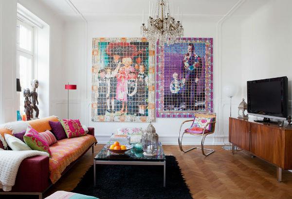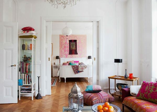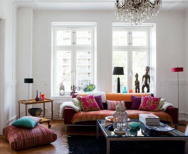 Διακόσμηση με ethnic πινελιές και έντονα χρώματα κυριαρχούν σε όλο το χώρο του σπιτιού.