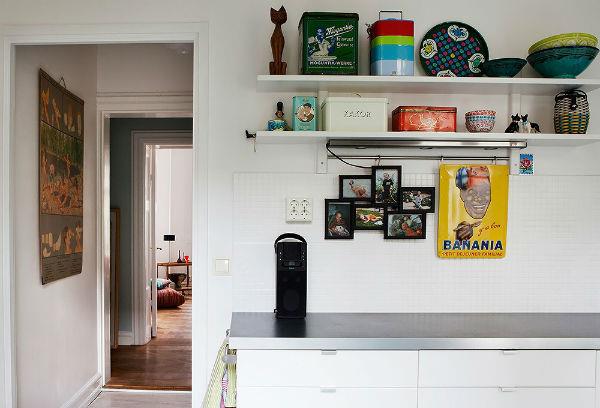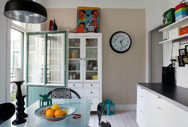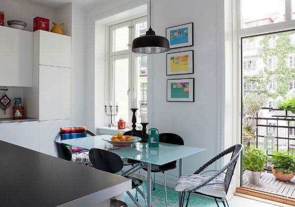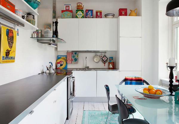 Με βάση το ουδέτερο λευκό, οι χώροι, από το καθιστικό και την κρεβατοκάμαρα μέχρι την κουζίνα, δέχονται μικρές αλλά έντονες νότες χρώματος που ζωντανεύουν τη διακόσμηση του σπιτιού. Tο λευκό είναι ένα χρώμα που προσδίδει φωτεινότητα, ενώ τα έντονα χρώματα συνδέονται με τη ζωντάνια και την καλή διάθεση.