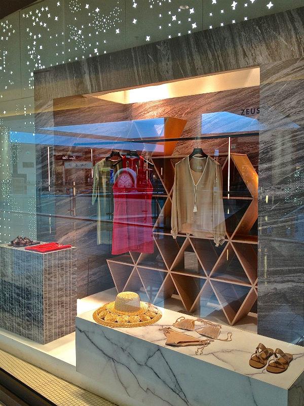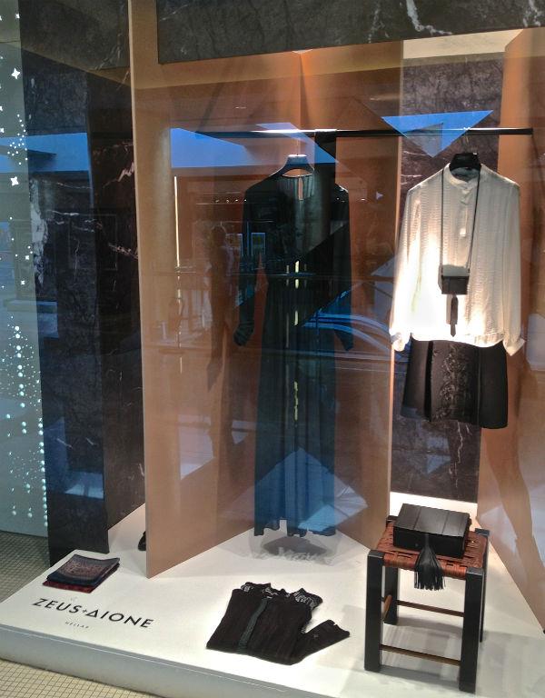 Με αφορμή το λανσάρισμα της νέας συλλογής Ζeus+Δione, οι βιτρίνες του attica στο Golden Hall συντονίστηκαν με τη μινιμαλιστική αισθητική του ελληνικού brand και γέμισαν με δημιουργίες στα χρώματα της άμμου με φόντο γραφικά που θυμίζουν τους περιστερώνες της Τήνου, αλλά στα χρώματα της πέτρας, των δέντρων, του λαδιού, χρώματα σκορπισμένα ολόγυρα στην ελληνική γη.