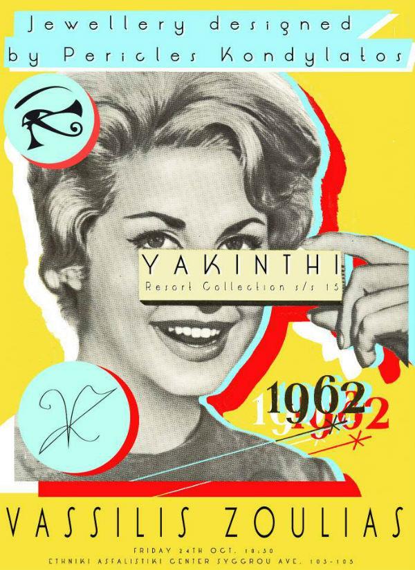 Ο σχεδιαστής Βασίλης Ζούλιας, πρόκειται να παρουσιάσει τη Νέα Resort Collection SS ’15, έχοντας ως πηγή έμπνευσης την Μις Ελλάς και Top Model των '60s ΥΑΚΙΝΘΗ Καραβίτη-Πολίτη.