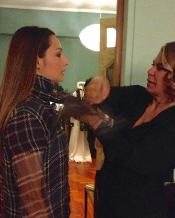 Τα χρώματα που κυριαρχούν στη συλλογή της Εύης το μαύρο, το λευκό, το εκρού αλλά και το χρυσό, που ταιριάζει άψογα με τα μπροκάρ υφάσματα.