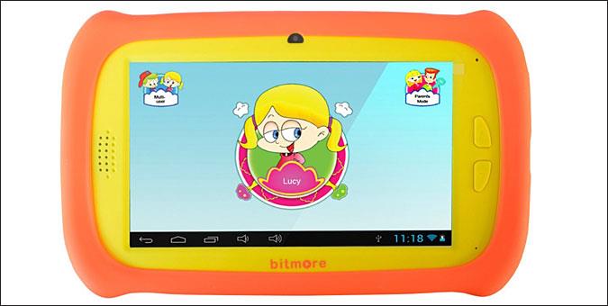 Bitmore KidPad 7 Τιμή: 80€ Το Bitmore KidPad 7 αποτελεί την ιδανική ευκαιρία για να γνωρίσουν οι μικροί χρήστες την τεχνολογία με διασκεδαστικό τρόπο (περιλαμβάνει 7 ελληνικές εκπαιδευτικές-ψυχαγωγικές εφαρμογές). Εξωτερικά ενσωματώνει θήκη σιλικόνης για προστατεύεται από τις πτώσεις και τα χτυπήματα, διαθέτει οθόνη αφής 7’’ με ανάλυση 800x480, διπύρηνο επεξεργαστή, ενώ το λειτουργικό σύστημα που χρησιμοποιεί είναι το Android 4.2. Το Bitmore KidPad 7 διατίθεται σε τρία χρώματα, κίτρινο με πράσινο πλαίσιο προστασίας, κίτρινο με πορτοκαλί πλαίσιο και πράσινο με μπλε πλαίσιο για να κάνετε την επιλογή σας.