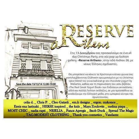 Η πρωτοβουλία είναι της σχεδιάστριας, Βάντας Ζαφειράτου, η οποία επιθυμώντας να στηρίξει τη προσπάθεια πολλών συναδέλφων της, αλλά και να προσφέρει μία πιο fashion pop up νότα στη πόλη μας, μεταμόρφωσε τον ισόγειο χώρο του νεοκλασσικού της Αιόλου 26, σε μία γκαλερί, εμπνευσμένη σχεδιαστικά από την αναγνωρισμένη ταυτότητα του χώρου ως υφασματάδικο, με την υπογραφή στο design της Μαριμίνας Παπαθανασίου. Η «Reserve Arthens» ελπίζει πως θα στεγάσει δημιουργίες μόδας καθώς και πολλά ακόμα εγχώρια projects, τα οποία «μυρίζουν» Ελλάδα.